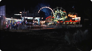 As for visual effects, we again mostly just have the shots of the storm clouds appearing in the sky when Chucky does his chant, both above the school itself and the carnival during the climax, as well as some animated bolts of lightning that strike around Andy as he's climbing up the mountain of skulls. While it looks okay the first time, the compositing is painfully obvious during the latter. Also, when De Silva shows Andy the carnival in the distance while they're camping out, it's so clear that they're on a set and looking at a rear-projection screen. Fortunately, it's only onscreen for a few seconds.