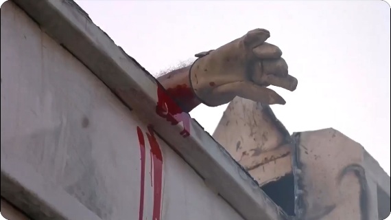 The production design is also top notch and adds significantly to the film's dark atmosphere. Case in point, the opening in the now abandoned Play Pals factory from the last movie, which has been sitting there unused for almost a decade (although it looks like it's actually been longer than that) and is now filled with cobwebs, dirt and dust, unused doll parts like heads and limbs and Good Guy packaging littering the floor, numerous other doll parts still hanging from and sitting at their spots on the assembly line, and a big vat of molten plastic that's