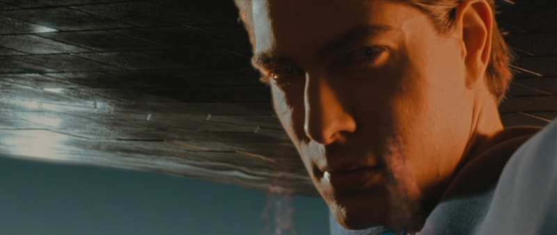 The effects in the movie are also well done. There's a lot of CGI and some of it is a bit dated (the completely computer-generated Superman that you see in close-up at the end of the movie is hardly convincing) but the majority of it does its job well. Actually, I think the best effects here are stuff like when you see the skyline of Metropolis (I'm sure there's a combination of CG and miniatures there) or the visuals of the Earth with Superman hovering above it in outer space. That is just breathtaking. I also like the image of Superman rising up into the sky in order to energize himself with the sun's rays after he's been saved and Lois has removed the shard of Kryptonite from his side. Again, that is awesome and would actually make for a great painting! Another thing that I appreciate is that they were quite subtle when creating the effects for Superman's powers. Of course, with the advent of computers, Superman can fly with more power than was ever possible before but they also decided to use some good old-fashioned harness and wire-work for when he's floating or flies off very gently. As it did with Christopher Reeve, it gives him a feeling of grace when he very gently flies off instead of just shooting around like a rocket all the time. And instead of making his eye-lasers over the top and flashy, they're very understated and surprisingly easy to miss as well, even when the camera is on a close-up of his face. The same goes for his super-breath and his X-Ray vision. I really like the effect of the latter power, in that it simply looks as if what ever he's looking at turns transparent when he uses it. The moment where he uses it on Lois to make sure she has no internal injuries after saving her from Luthor's sinking yacht looks very cool to me. The effects that you see when Luthor's continent is rising from the sea, when that criminal fires a mounted mini-gun at Superman, and when Supes carries the continent up into space are clearly CGI but it is pretty good CGI and serves its purpose. And finally, I really like the opening credits sequence. Not only does it have a nice recreation of the original film's actual credits but the camera zooming around the universe combined with the credits coming at the screen is very energetic and exciting. (I've heard some say that it looks the opening to 3rd Rock from the Sun but I just think that's being really petty and nitpicky myself.) It's just a shame that a huge chunk of the actual movie doesn't have that amount of stuff happening.