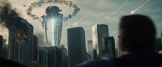 You may be surprised to learn that, for a big comic book movie, there aren't as many visual effects as you might think. According to producer Charles Roven, there are 1,500 effects shots, which is fairly small for this type of film, although it didn't surprise me given that there are no scenes on Krypton this time, the inclusion of the more realistic character of Batman, and the sad fact that there really isn't that much action until the third act. Like before, the quality of the effects varies. Superman flying, floating in the air, and landing looks good more often than not, as does the green-screen work, effects like the explosions and the electrical surges that you see leading up to the birth of Doomsday, and the compositing of the real actors within big, fantastical environments, like in Bruce's dream, the Batwing, which is made up of digital elements incorporated around a practical cockpit that Ben Affleck sits in, and during the final battle. However, there are many moments when something doesn't look all that realistic, like some of the weapons Batman uses on Superman during their fight and some of the times they hit each others, many shots of Superman and Wonder Woman in action, the former's heat-vision, the close-up of Superman's shriveled, corpse-like body after he gets hit with a nuclear missile (the shot of him regaining strength from the sun's rays looks pretty good, though), and such; some are easy enough to overlook, as they're not dwelt upon long enough for them to become distracting, but others aren't so lucky. You inherently know that there are digital elements in all of the action scenes, including the most down-to-Earth one, which is the chase with the Batmobile, but there, they often go by so fast and are small, individual parts of such big spectacles that it's unlikely that they'll become an issue. The biggest piece of effects-work in the entire movie is Doomsday, who is 100% computer-generated and is brought to life through motion-capture work with Robin Atkin Downes, who also does the vocal effects; he's also, unfortunately, where the movie's effects work does take quite a nose-dive. You just know that this thing isn't really there, as his movements and skin textures look too synthetic (he reminds me of how the Hulk and the Abomination both looked in the 2008 movie with Edward Norton), as do other elements like when he rips out of his egg sack and later sheds his skin, which is where he develops the bony spines and large muscle mass more consistent with the way he looks in the comics and other media. I think another part of the problem is that he's depicted as being the size of a house rather than his original size of maybe eight to ten feet tall, which forced them to have to use CGI a lot rather than use a combination of suit-work and makeup (they could have still done animatronics and other techniques for the shots of him that weren't big and wide, though). In fact, the whole section of the film involving him, especially the final battle, is a really big, CGI fest, which very quickly wears thin. But what really sinks him is that, on top of everything else, he comes in so late, his appearance is so forced, and he has no character other than that of a mindless beast, making the final battle against mean very little. The effects showing him use his ever-developing powers do look nice, though, and bring a feeling of scope to the proceedings when you see the wide shots of him sending out huge shock waves.