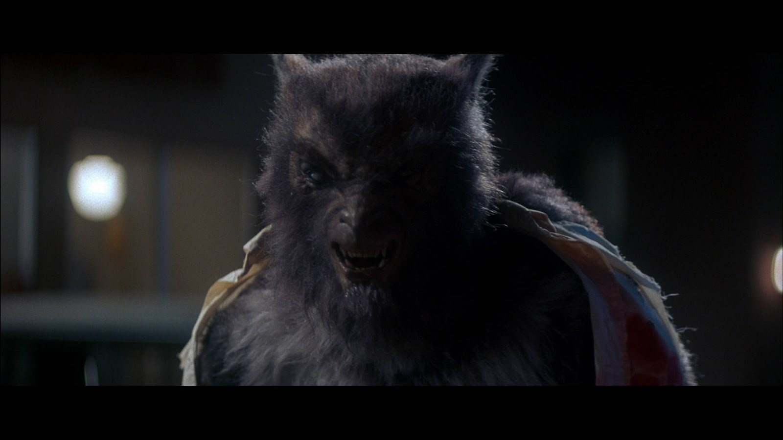 John Rosengrant, who'd already worked with Stan Winston on The Terminator, Aliens, and Predator at this point, and would go on to work on the Jurassic Park movies, Congo, The Ghost and the Darkness, The Sixth Sense, and many other movies, served as the head monster maker on the Wolf Man. His design only resembles what Lon Chaney Jr. looked like in those movies in the broadest sense, as the face doesn't have as pronounced a nose as that classic makeup design, instead going for a more obvious snout (the face actually looks kind of squashed from certain angles and doesn't look that good to me, overall), and the ripped open, white shirt exposing the hairy body reminds me more of how Oliver Reed looked in the Hammer film, The Curse of the Werewolf. The transformation effects are done in that same style that Rob Bottin and Rick Backer employed in The Howling and An American Werewolf in London, first with just glimpses of his hands and legs changing in the back of the coroner's van but later showing his face changing in the phone booth (he really looks like Reed's werewolf in the close-up of his face in that scene) and his shoulder blades stretching and bursting through the back of his shirt. That aforementioned effect of his body parts rejoining after he's been blown up, as well as his hands and feet twitching beforehand, are equally well-done.