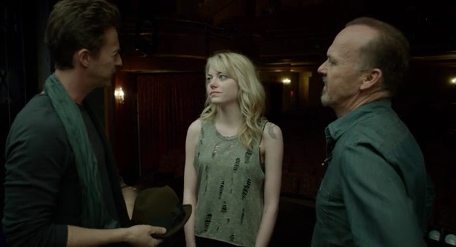 Now, before you think I'm making a judgement on Inarritu without really knowing what he thinks about the genre of superhero and comic book movies, allow me to let him speak for himself: "For me superheroes represent that vision of humans as flawless and certain, and all those things that are a delusional projection of how human beings should be. It's almost fascist. There's something very scary about that, the vanity. And for me, humans are exactly contrary to all that. I've never met a human like that. And I'm much more interested in humans, which I find much more dimensional and contradictory and flawed and driven by fears and anxiety, but at the same time, beautiful, pathetic, lovable creatures that I find fascinating. I think the values of the superheroes are in a way affecting the way the military mind works. So I have a conflict, philosophically, with the generations today not being fascinated by our human flaws and possibilities, and everything that's human seems to be boring now. It's scary for me. That's my conflict-that humans seem to be now no longer subject to analysis and observation, and we cannot see ourselves in films because we feel so bad about ourselves. We have been acting so bad in the last years, the world is in such bad shape, that probably the reason, I'm being outspoken here, is there's a shame about seeing humans on the screen. And that's sad." That quote says to me that Inarritu has never actually watched any of these movies, because if he had, he would know that, more often than not, especially nowadays, those characters are portrayed as flawed and complex and not the perfect, vain beings he seems to think they all are. And so, while I'm sure it did have to do with their just being great actors, I can't help but wonder if it was more than a coincidence that he hired people like Michael Keaton, Edward Norton, and Emma Stone, who've been involved with superhero films, to be in the movie, especially with the parallels between Riggan and Keaton's period as Batman. (Speaking of which, isn't it interesting to see Norton railing on the toxic crap he says Hollywood puts out, i.e. the kind of movies Riggan was once in, while in reality, he himself was fired from the Marvel Cinematic Universe after The Incredible Hulk for actually being a little too much like his character here?)