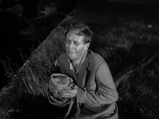 As you know, one of the things that's a big plus for me in a horror film is really good atmosphere and The Quatermass Xperiment is absolutely dripping with it. First off, it's a black-and-white movie shot in England, so the ever present gray, overcast skies and the genuine feeling of it being very cold (the film was shot from October to December), with everyone wearing heavy coats over their suits and their often visible breath, gives it all a very solemn, depressing vibe. Second, as you can see, the cinematography is very noirish, with deep blacks and lots of shadows, adding even more to the atmosphere and giving it a feeling of the horror films Val Lewton produced for RKO in the 40's. Speaking of which, this movie does make extensive use of that "less is more" approach he was known for, both in how you don't see the creature Carroon is becoming until the very end, with its presence merely suggested for the most part (the footage from inside the rocket, the scene at the zoo, where you just see pieces of the rapidly mutating Carroon, as well as some POV shots and shadows, and Rosie's story of seeing it crawling up along a wall in the dark, are effective examples of this), and also with how you never learn exactly what this thing is. All you know is that it's some alien organism the rocket-ship encountered out in space, that it got inside the ship, killed the other two men, and has now taken possession of Carroon and is using him as a vessel through which to spread across the Earth. It's made even creepier when Quatermass describes it as possibly being an unseen, invisible mass of living energy and that this is the end result of its combining with organisms that have a cellular structure. It's also suggested that the creature's bond with the cactus in Carroon's hospital room has now given it the plant-like ability to multiply through airborne spores and seeds (which explains a moment earlier when Carroon seemed strangely interested in the flowers Judith brought for him at the institute). And finally, going back to the idea of atmosphere, that scene at the zoo is the creepiest in the entire film, with its dark cinematography, use of shadows, brief glimpses of the mutated Carroon, and the complete absence of music, with only the sounds of the frightened animals and the sound of Carroon shuffling across the grounds.