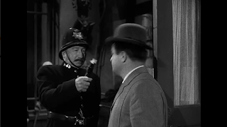 That notion that Abbott and Costello's career was quickly winding down at this point comes across somewhat in the movie itself, given how little it actually focuses on them and doesn't allow them to engage in their usual form of comedy. As I said, though they're introduced fairly early on when they try to break up the fight at the women's suffrage rally, only to get caught up in it, wind up in jail themselves, and then get kicked out of the London police force (their presence in London at the turn of the century is explained away as them having come over to learn the British way of law enforcement), their first major scene doesn't happen until later, when they track Mr. Hyde into a music hall in an attempt to capture him. In fact, Tubby initially takes Hyde for a burglar, while Slim is the one intent on catching "the monster" that's been terrorizing London. When Tubby encounters Hyde, they realize they've run into the monster and attempt to capture him, only for Tubby to twice crack Slim over the head. Along with Bruce Adams, they pursue Hyde along the rooftops leading away from the music hall, with Tubby falling into a pair of long underwear hanging on a line suspended between buildings before ending up in a wax museum with Hyde. He manages to capture Hyde, but he turns back into Dr. Jekyll by the time Slim and the inspector get there, causing them further embarrassment and derision from the inspector. Rather than press charges, Jekyll asks Slim and Tubby to escort him home under the pretense of being afraid of running into the monster himself, and then offers them five pounds to stay the night there. Though Slim is more than happy to accept, Tubby, knowing what he saw and not trusting Jekyll, is scared out of his wits at the idea. After failing to convince Slim, Tubby finds himself unable to sleep that night and does a little exploring around Jekyll's house. He's stalked and attacked by Jekyll's assistant, Batley, and blunders into his hidden laboratory, where he finds a number of animals whose brains Jekyll has switched around. Escaping the lab, he runs into Jekyll and tries to convince Slim of what he saw. While he denies the existence of Batley, Jekyll does take them back down into the lab and confirms what Tubby saw regarding the animals. When Jekyll leaves them alone at one point, Tubby, after drinking a beaker of what he thinks is water but is actually a bizarre serum, sneaks out of the house, followed by Slim.The two of them stop at a pub for a drink, only for the serum Tubby drank to take effect and turn him into a man-sized mouse, which both he and Slim are initially oblivious to, though everyone in the pub sure sees it. When Slim finally looks at Tubby, he faints, twice, and Tubby does the same when he realizes what's happened to him. He then reverts back to normal and, now convinced that there is something sinister about Jekyll, Slim decides they should tell the inspector. Of course, the inspector doesn't believe them, and when they go to Jekyll's home with Vicky Edwards and Bruce in order to convince them, Jekyll has removed all traces of his laboratory, which is now a wine cellar. Demoralized, the two of them try to find where Jekyll hid everything, and when Slim finds a bottle of Moselle wine, he pronounces it "mouse-el" and thinks it's what Tubby drank before. He gets him to drink some, hoping he'll become a large mouse again, but all he succeeds in doing is getting Tubby really drunk. However, the two of them are then vindicated when Jekyll reveals his true, cruel nature to Vicky when he refuses to let her marry Bruce and transforms into Hyde again. They get caught up in Bruce's struggle to save Vicky from Hyde and Tubby gets repeatedly stuck by a syringe full of the formula that created Hyde. Soon, he becomes a Hyde-like monster himself and Slim, thinking he's the beastly Jekyll, chases after him while Bruce chases the real Hyde. While not as vicious as the real Hyde, and more apt to run away whenthreatened rather than attack and kill, Tubby's monster still manages to scare the crap out of a bunch of Londoners as he's chased through the streets. The chase culminates in a moment where he, the real Hyde, Bruce, and Slim end up on the same rooftop, circling a raised skylight as they stalk each other. Both Hyde and Tubby freak each other out and, after Tubby and a chimney sweeper scare each other, he runs into a clothes line and knocks himself unconscious. Slim captures him