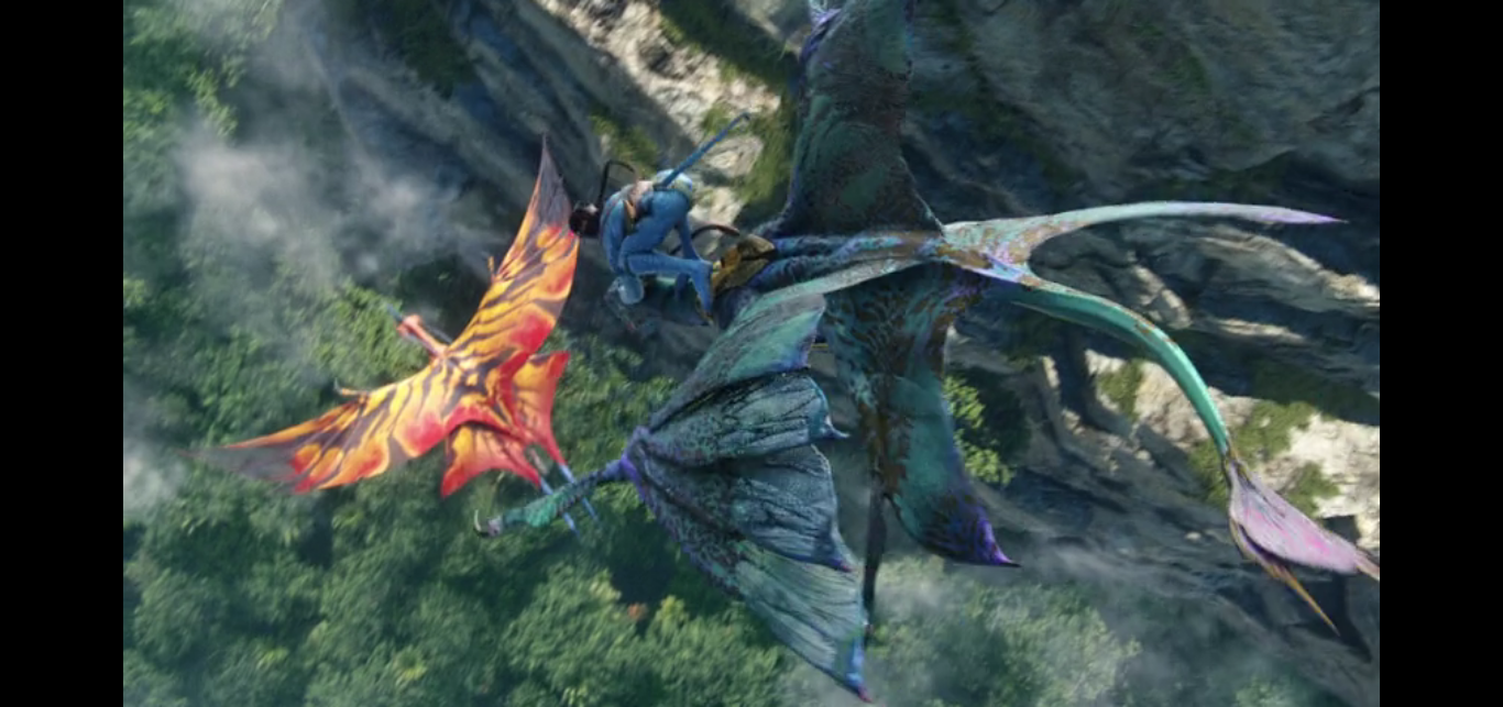 our land!" Everyone cheers at that, and Jake and Neytiri rush to Toruk and mount him. After they take off, following Toruk letting out an impressive cry and wing display, Tsu'tey and everyone else rush to their own banshees and fly after him. They're